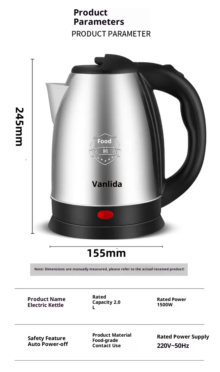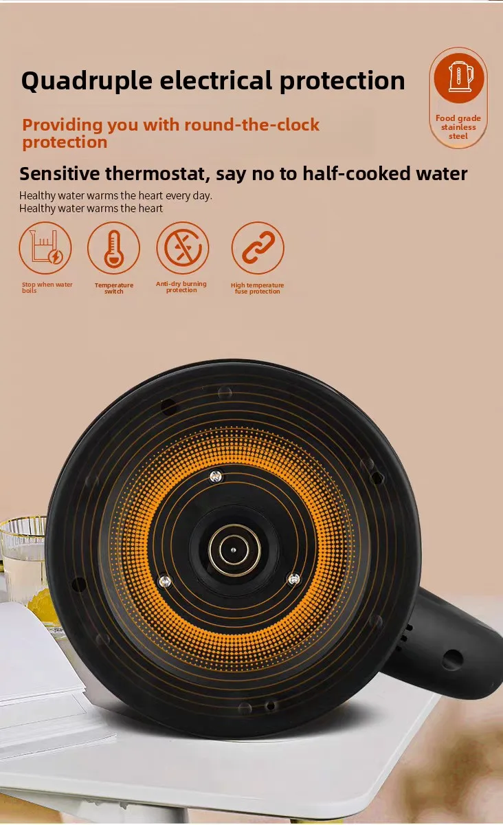 1.Modern Design: This 1.8L Electric Kettle features a sleek and elegant design, perfect for any modern kitchen, with a stainless steel exterior coating and a pot cover made of high-quality stainless steel.